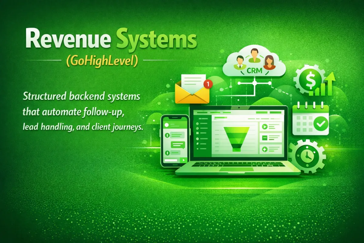 Inside GoHighLevel, I design back end infrastructure that connects your marketing, leads, and follow-up into one structured system.